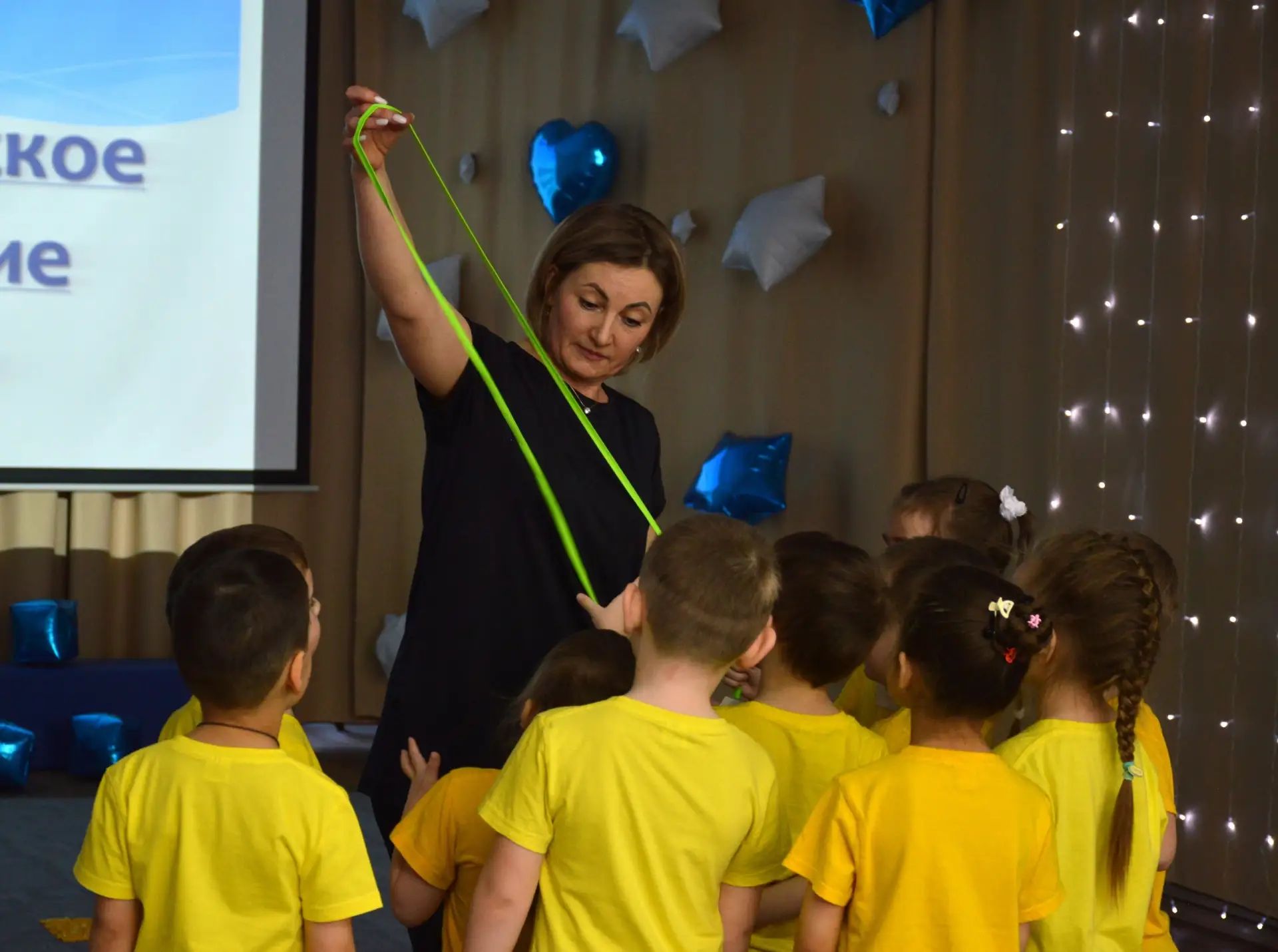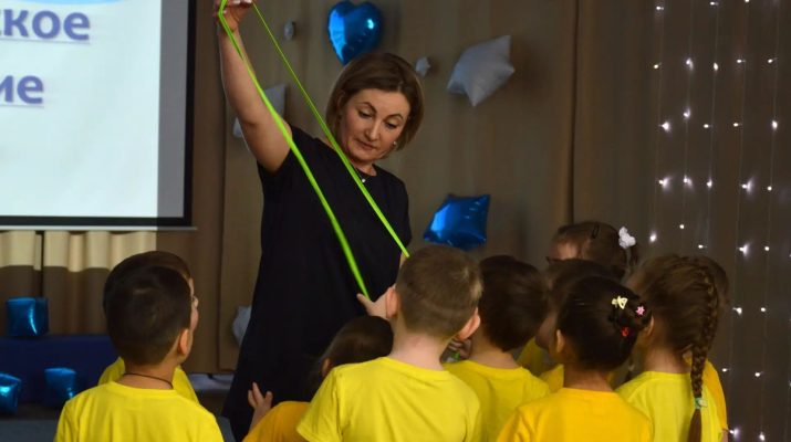 Воспитатель из Улыбино Евгения Овчинникова проводит с детсадовцами пальчиковые игры — развивает у них мелкую моторику.