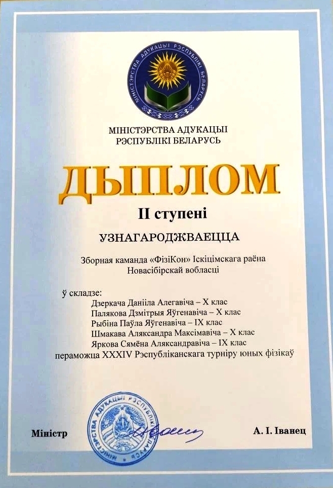 Команда «ФизиКон» из Искитимского района заняла второе место на XXXIV Республиканском турнире юных физиков в Минске.