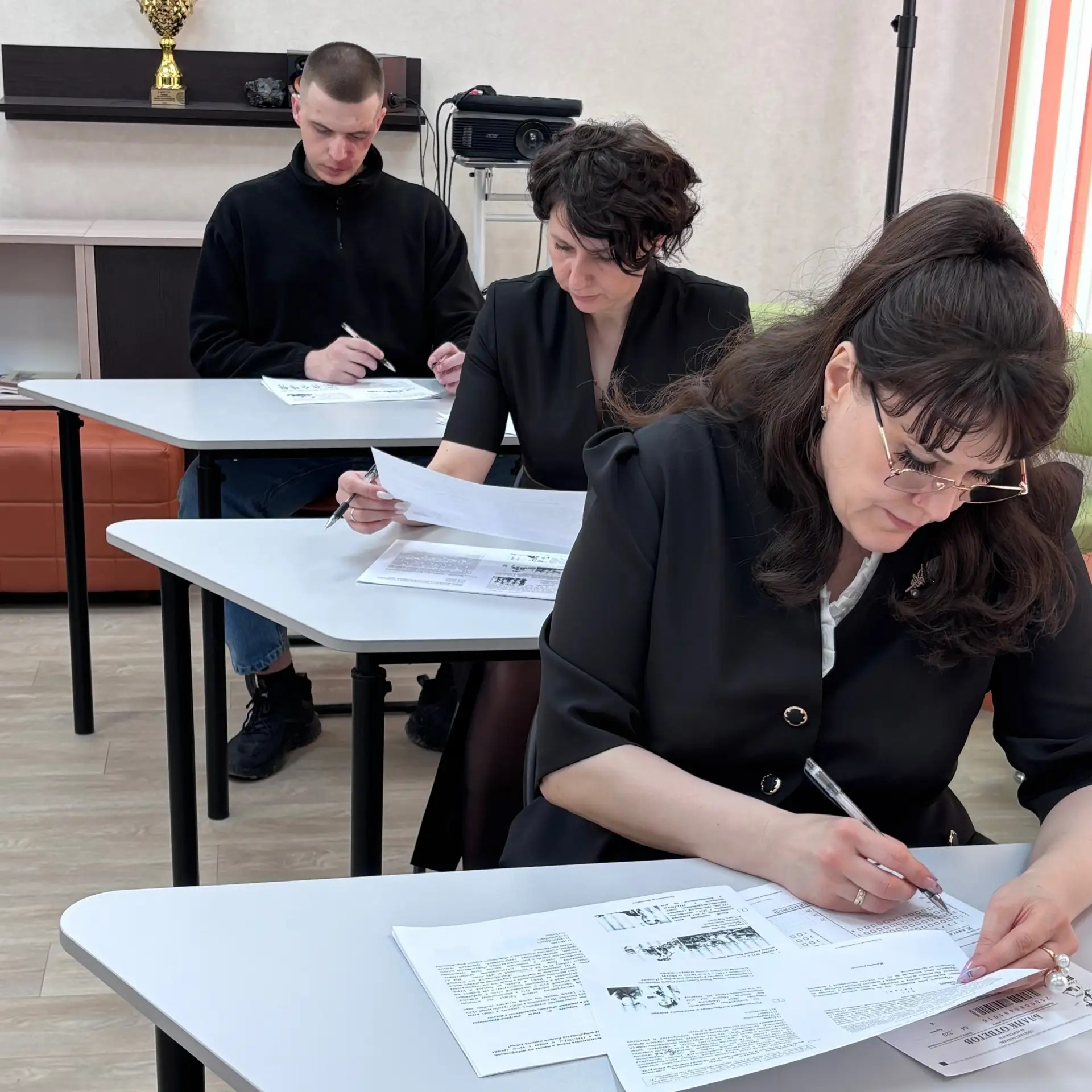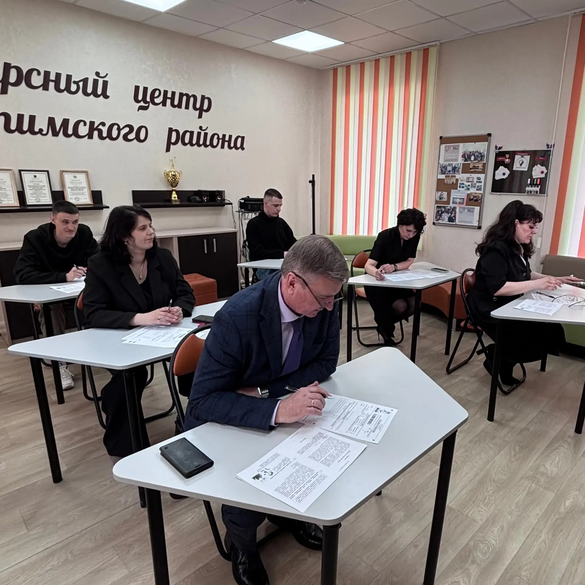 В ресурсном центре Диктант Победы вместе с молодежными активистами писали глава Искитимского района Юрий Саблин, председатель Совета депутатов района Генриетта Истратенко, другие специалисты администрации Искитимского района.
